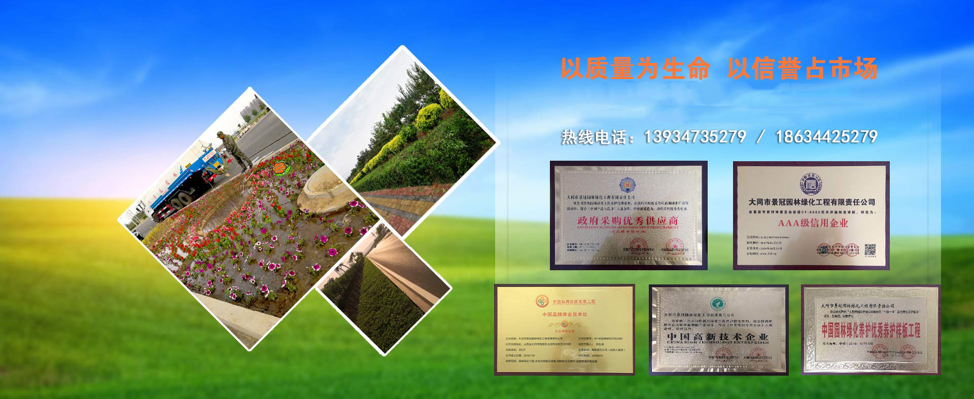 大同市景冠園林綠化工程有限責(zé)任公司是一家根植于設(shè)計(jì)、施工、植保養(yǎng)護(hù)、苗木花卉生產(chǎn)于一體的園林景觀企業(yè)。公司“以質(zhì)量為生命”、“以信譽(yù)求發(fā)展”這是公司一貫的經(jīng)營宗旨。并以創(chuàng)新,誠信,綠色,共享的發(fā)展理念,創(chuàng)造良好的企業(yè)環(huán)境。堅(jiān)持愛綠,護(hù)綠,保綠的方針為城市增添一份綠色,用綠色擔(dān)當(dāng)生態(tài)建設(shè)使命是我們共同追求的價值和企業(yè)目標(biāo)。以全新的管理模式,完善的技術(shù),周到的服務(wù),卓越的品質(zhì)為生存根本。幾年來我們致力于園林景觀植物領(lǐng)域的研究,在城市綜合體景觀,校園園林景觀,道路景觀,生態(tài)農(nóng)業(yè)景觀,美麗鄉(xiāng)村景觀,濕地景觀等多個領(lǐng)域參與規(guī)劃設(shè)計(jì)施工。不斷加大科技投入力度,加強(qiáng)人才的儲備,網(wǎng)絡(luò)技術(shù)的培訓(xùn),提升自主創(chuàng)新能力,不斷完善企業(yè)文化,用超前的技術(shù)制定出一套完整的園林植保技術(shù)管理方案。我們堅(jiān)持以擔(dān)當(dāng)為使命,用戶至上,服務(wù)至上,秉持初衷,不忘初心,實(shí)實(shí)在在,心無旁騖做好植保養(yǎng)護(hù)主業(yè),打造屬于自己的企業(yè)品牌,好好服務(wù)客戶,打動客戶。